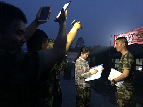 2018年5月,《军嫂》执行总编彭清雯在武警某部野外驻训点随机采访,官兵主动用手机照明