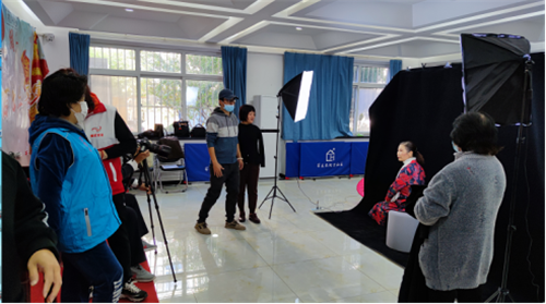 本次活动由社区居委会联合专业社会组织、社工、志愿者,邀请专业摄像老师免费为参加活动的北里社区老年居民们拍摄影像,把握当下,留住最美好的自己。参加活动的老人们早早地来到活动场地,纷纷讨论穿搭,拍摄时你用我的围巾,我用你的纸扇。灯光闪闪,笑声连连。不相识的邻居相识了,熟悉的邻居更贴心了。